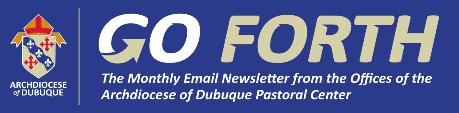Last January, we began sending this monthly email newsletter to households with the goal of fostering connections and building communion within the Archdiocese of Dubuque. Each monthly email has been temporarily titled 'News from the Archdiocese of Dubuque Pastoral Center' as we discern a permanent title that conveys our collective mission and aligns with important archdiocesan initiatives. This newsletter is now titled Go Forth.